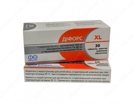 діфорс XL 160 таблетки 10мг/160мг №30 + таблетки №10