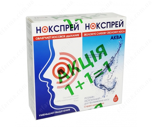 нокспрей назальний спрей 0.05% 10мл+нокспрей Аква розчин ізотонічний 20мл - eFarma